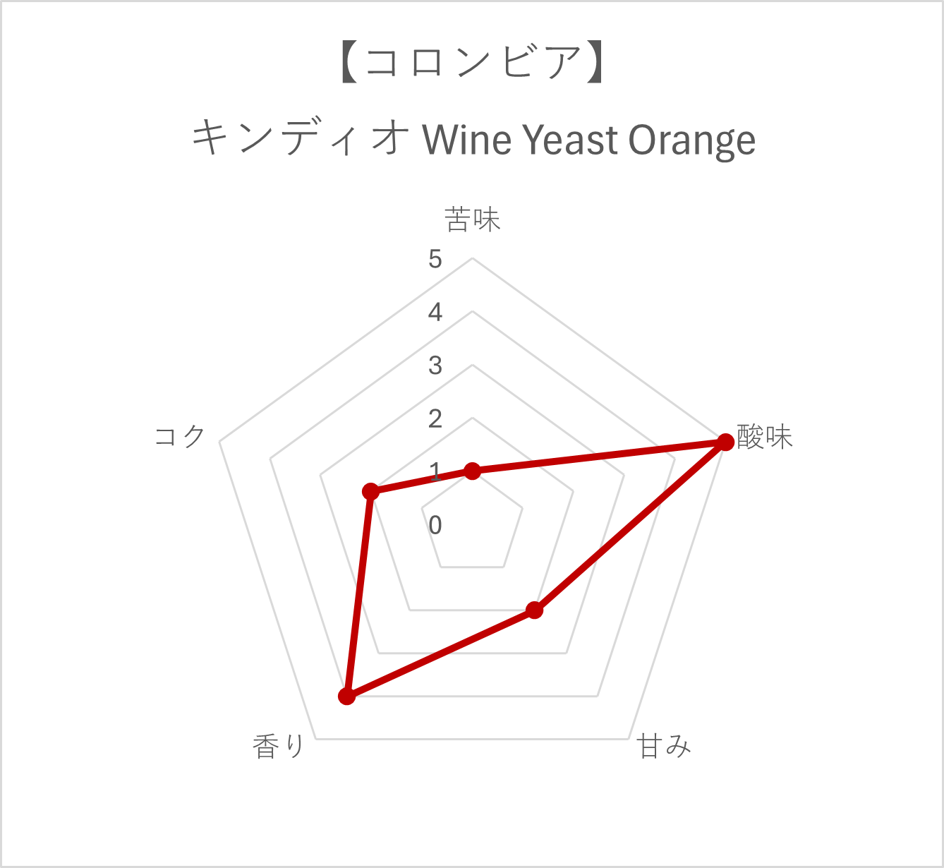 精製の際フルーツ等に漬け込む変わった製法。口の中にオレンジの爽やかさが広がりオレンジピールの苦さを感じる。透き通った酸味が炭酸との相性◎