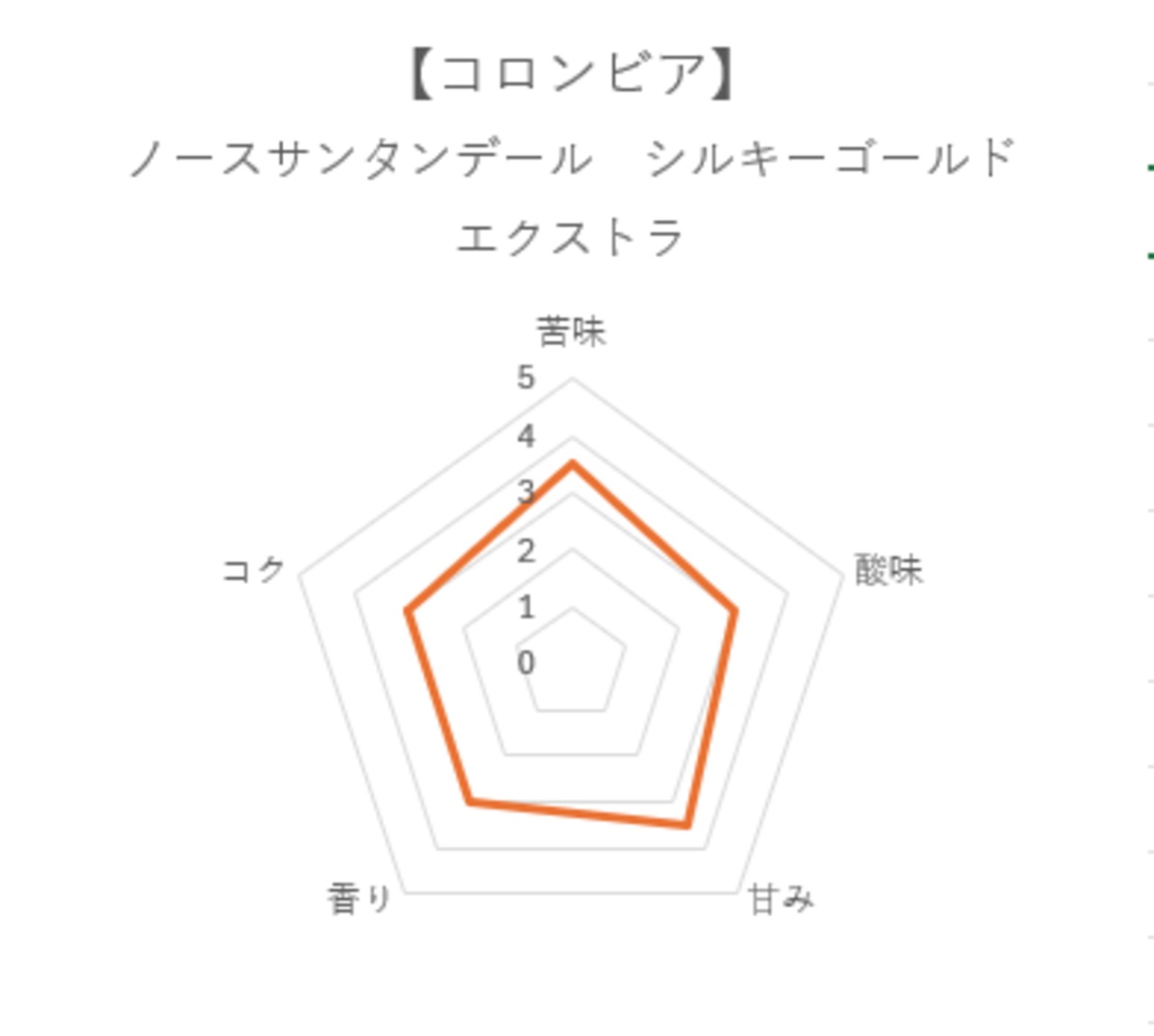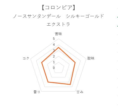 コロンビア南部でとれる華やかでフルーティーなものと違い北部でとる珈琲豆は質感、甘さ、コクがポイント。クリーンで柔らかい酸味とシルキーで滑らかな質感で北部ならではのミルクチョコレートやキャラメルの様な甘さ。中深煎り以降では酸味もマイルドになりコクを伴った甘さが◎
