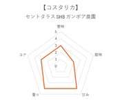 オレンジやさくらんぼ、ぶどうやカシスと言った酸味としっかりとした甘味。中煎りまでは透明感のある質感。中深煎以降チョコレートやキャラメルの様なコクと甘みで苦味やボディ感が増し飲みごたえがグッと増す。まとまりがあり飲みやすさと甘味を重視したい方に◎