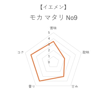モカの代名詞として扱われている商品で、愛飲家が多い。「幻のコーヒー」や「コーヒーの貴婦人」と称される最上級モカ。名前についている「No.9」は産地の基準でNo.6〜No.9まであり数字が大きいほど大粒で欠点豆混入率が低い高品質なことを表している。